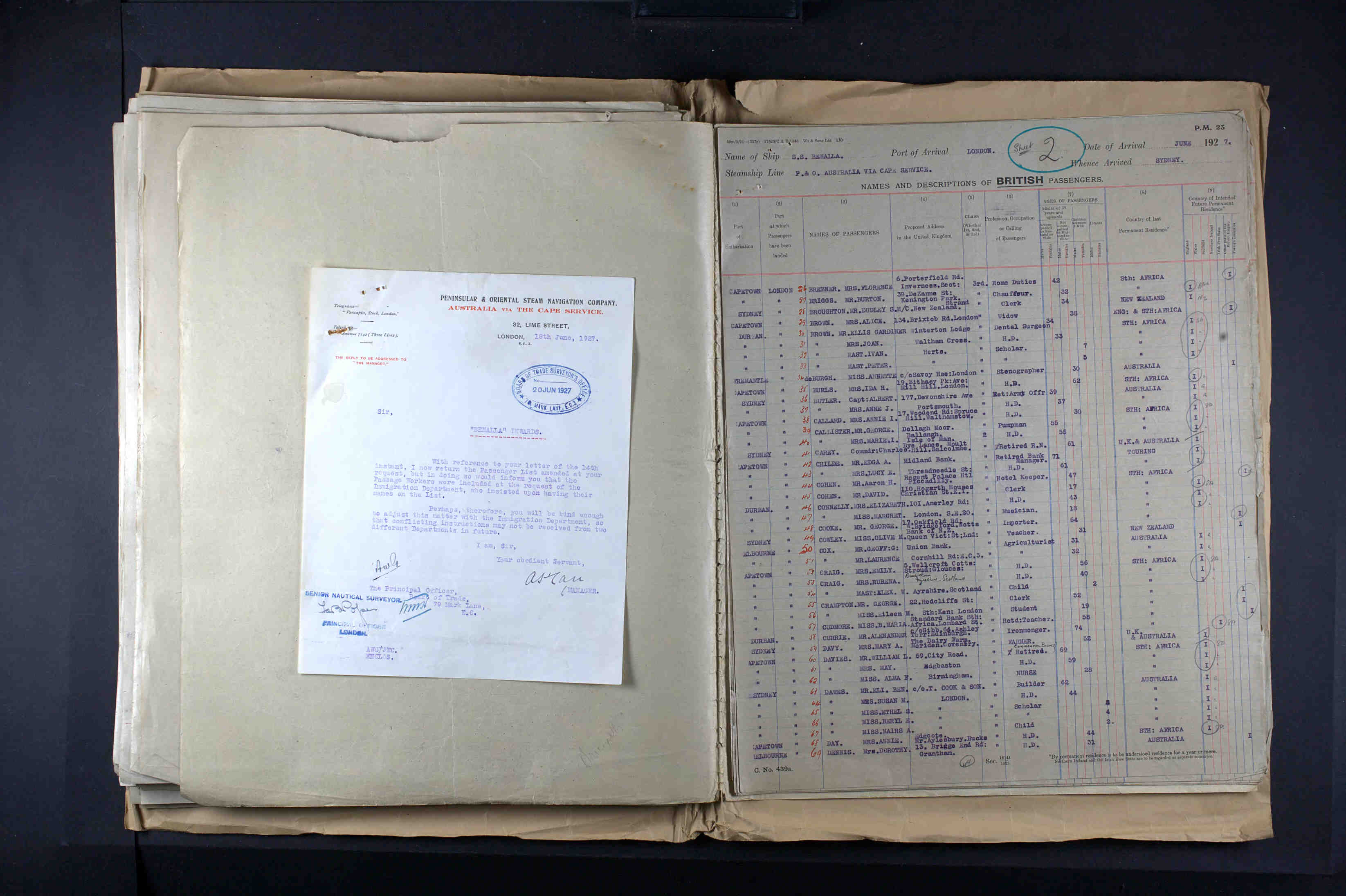 • Travel: Arrival In England, Jun 1927, London, England. Arrived on the S.S. Remalla, P&O Australia via Cape Service.